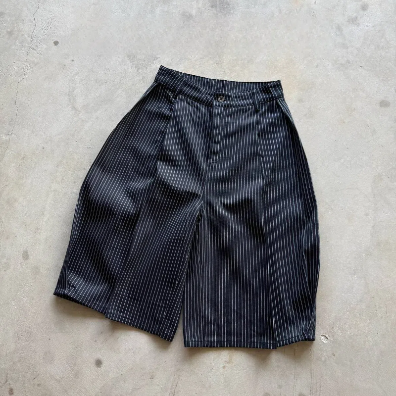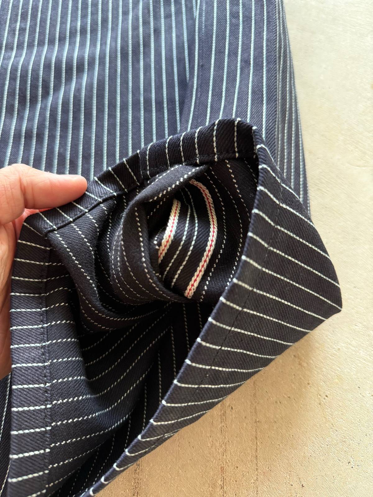 PLEATED PINSTRIPES SELVEDGE CAPRIS